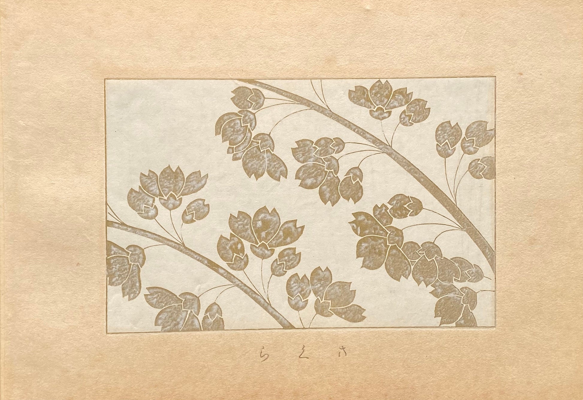 Japanese design, antique, woodcut print, 1933, Kawarazaki Kodo, Antique Woodcut Design Print, Cherry Blossoms.