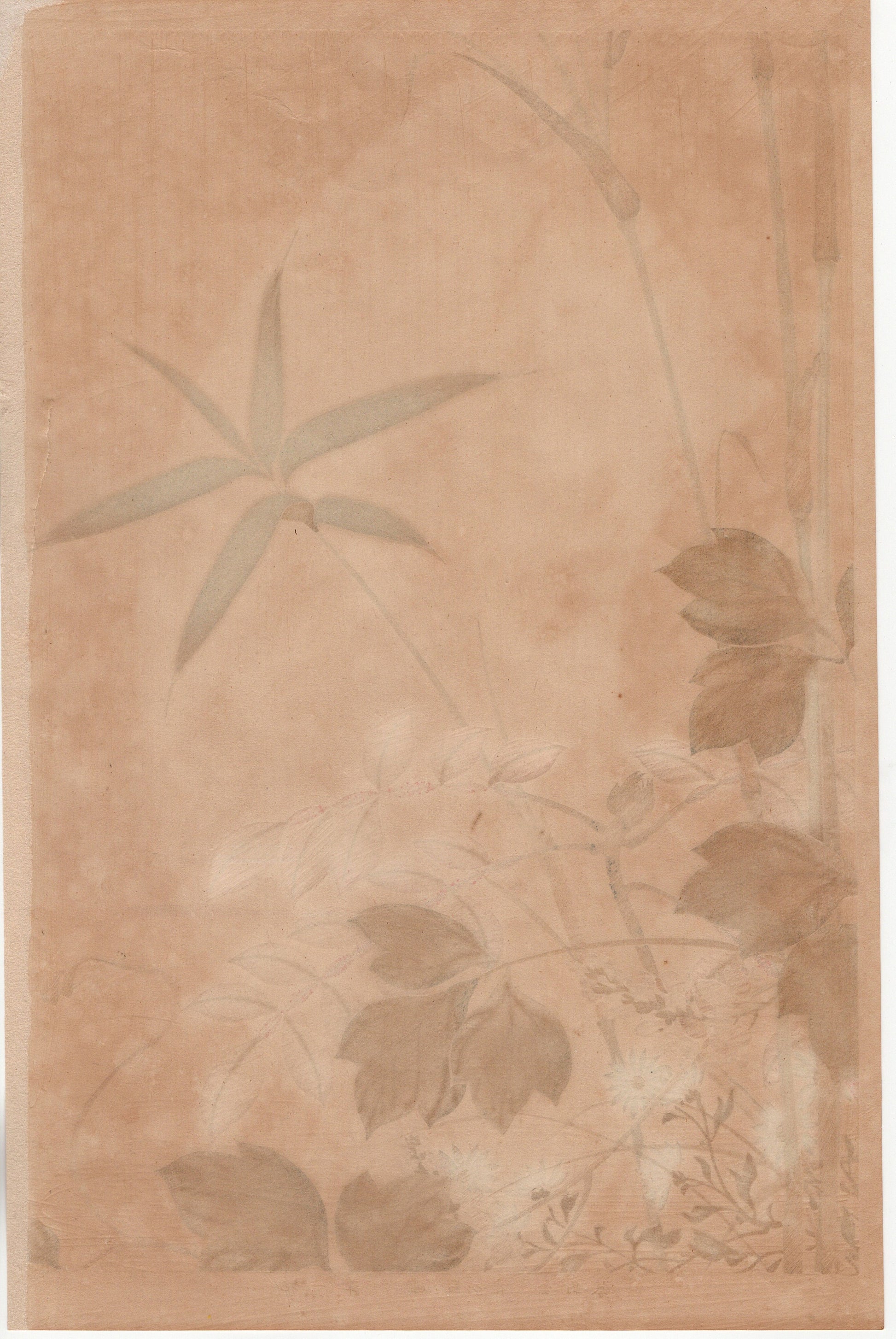 Japanese design, antique, woodcut print, 1930, Sakai Hoitsu, "Album of Hundred Flowers by Artists of Rinpa School, Wax tree, Kudzu”