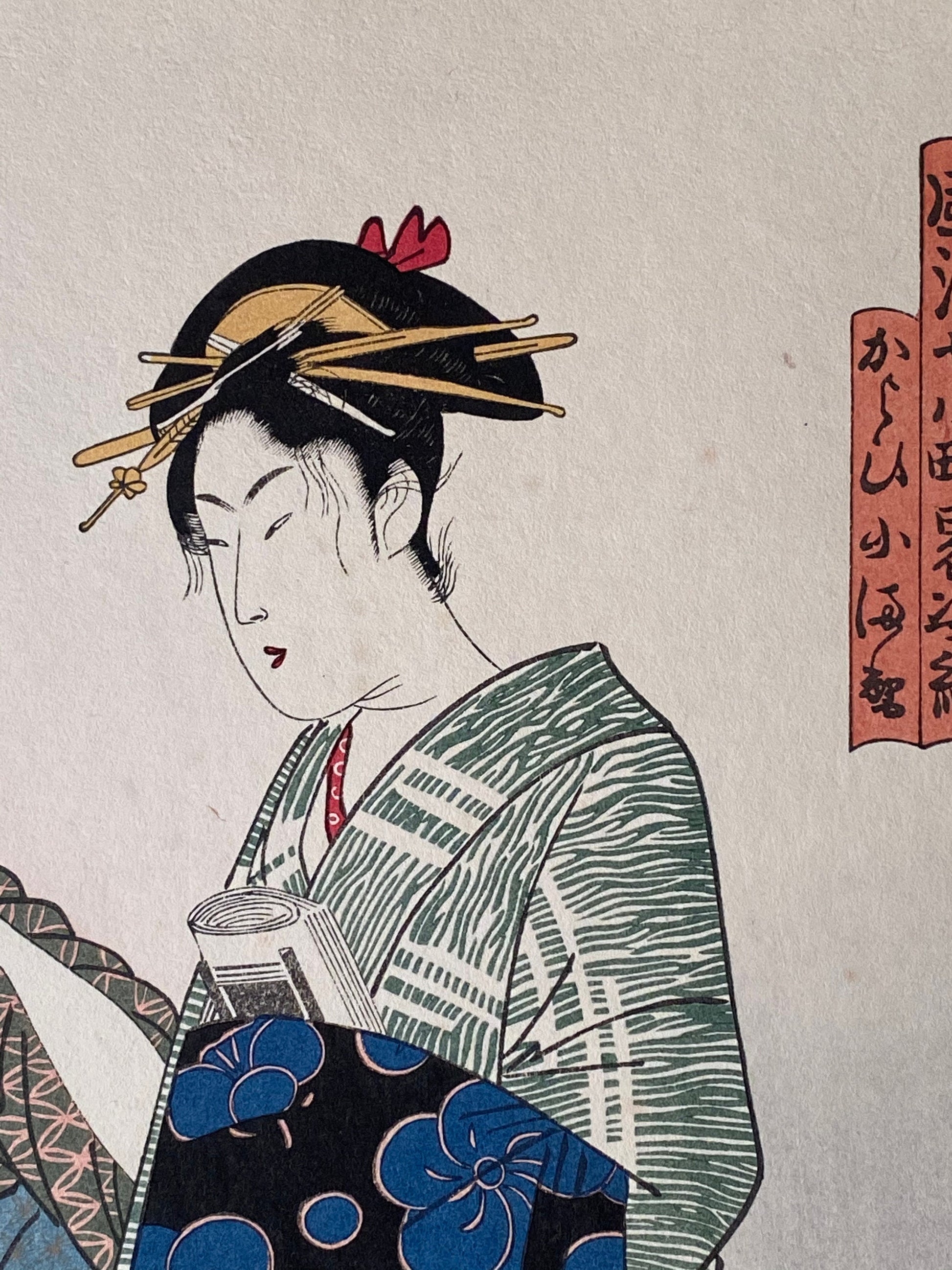 Japanese Ukiyoe, woodcut print, Utagawa Toyokuni, "Visiting Komachi (Kayoi Komachi)"