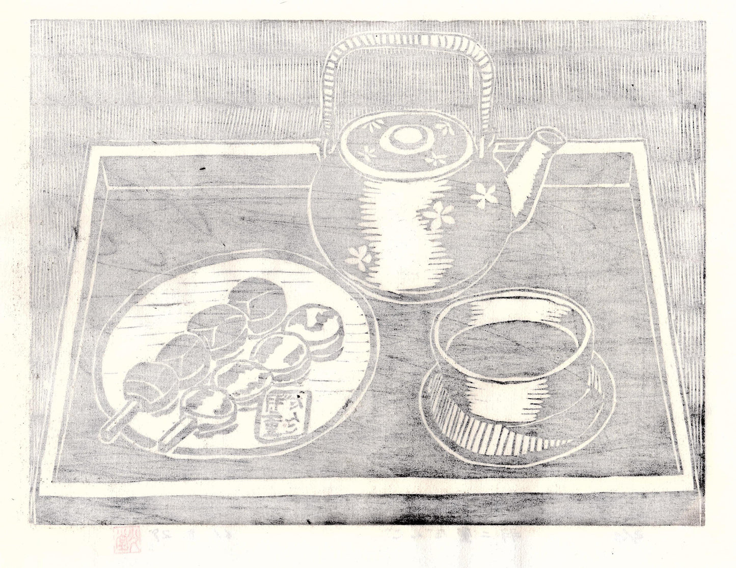 Japanese Ukiyoe, Woodblock print. Sosaku-Hanga, "Dumpling"