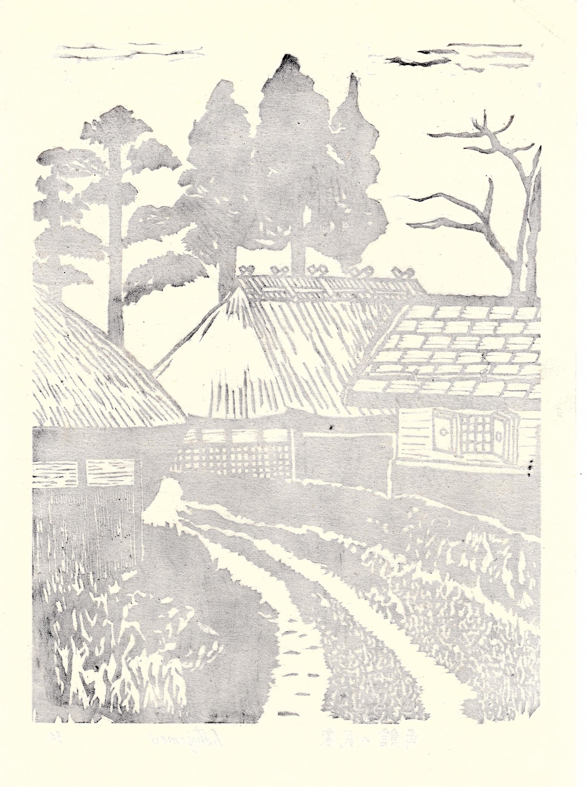 Japanese Ukiyoe, Woodblock print. Sosaku-Hanga, "Private house"