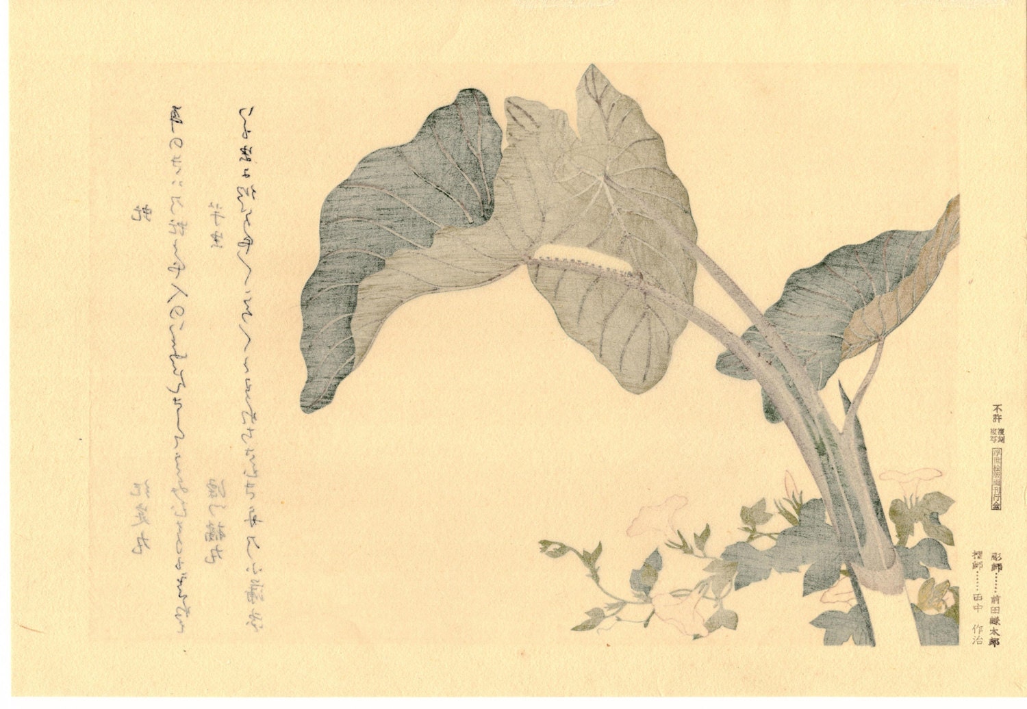 Japanese Ukiyo-e Woodblock print, Utamaro, "Green Caterpillar (Imomushi) and Horsefly (Abu)"