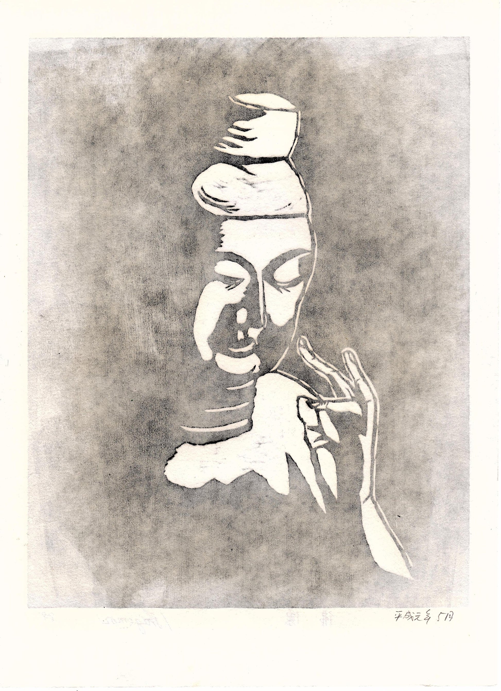 Japanese Ukiyoe, Woodblock print. Sosaku-Hanga, "Statue of Buddha"