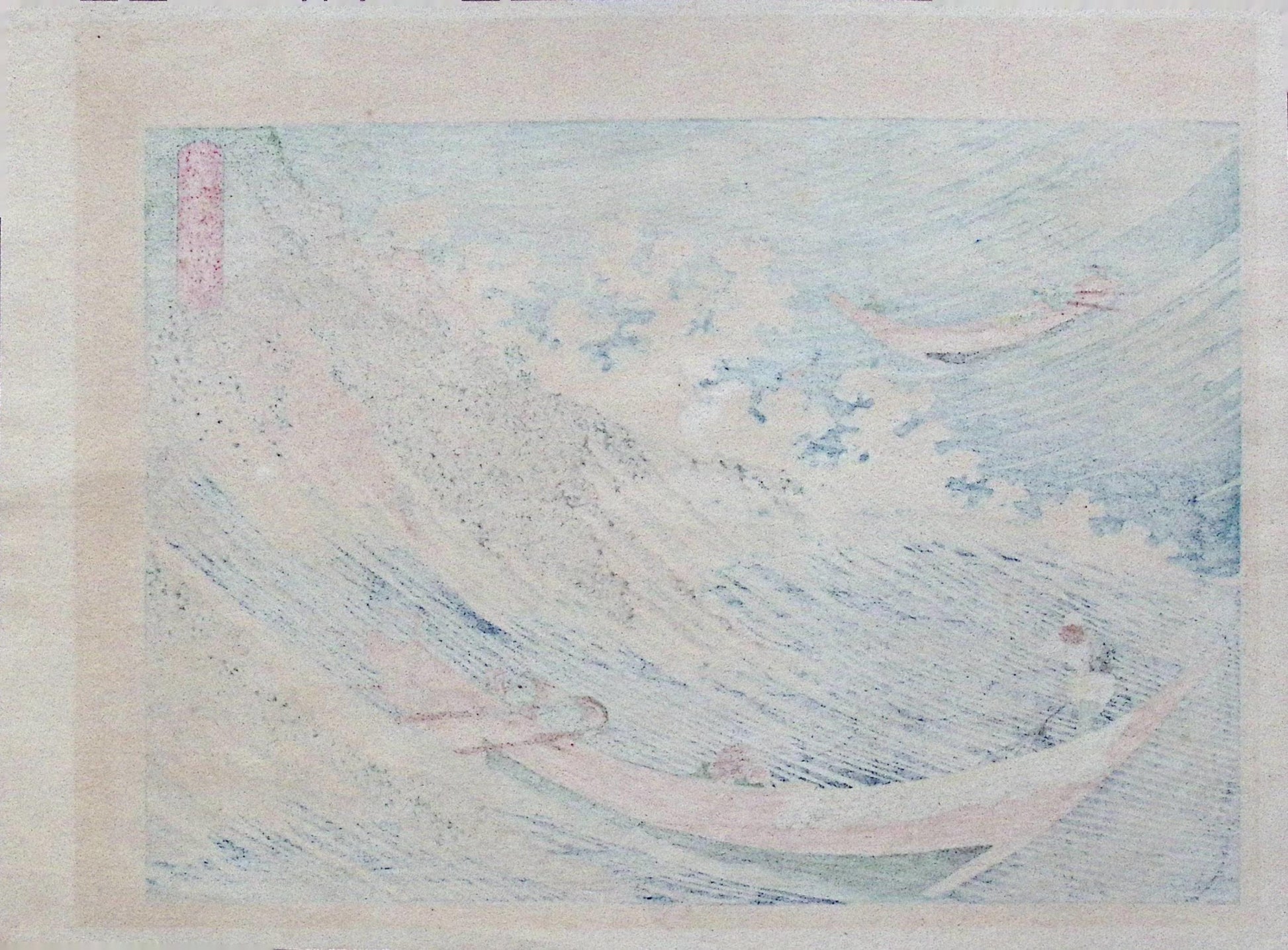 Japanese Ukiyo-e, Woodcut print, Katsushika Hokusai, "Human being against the raging sea"
