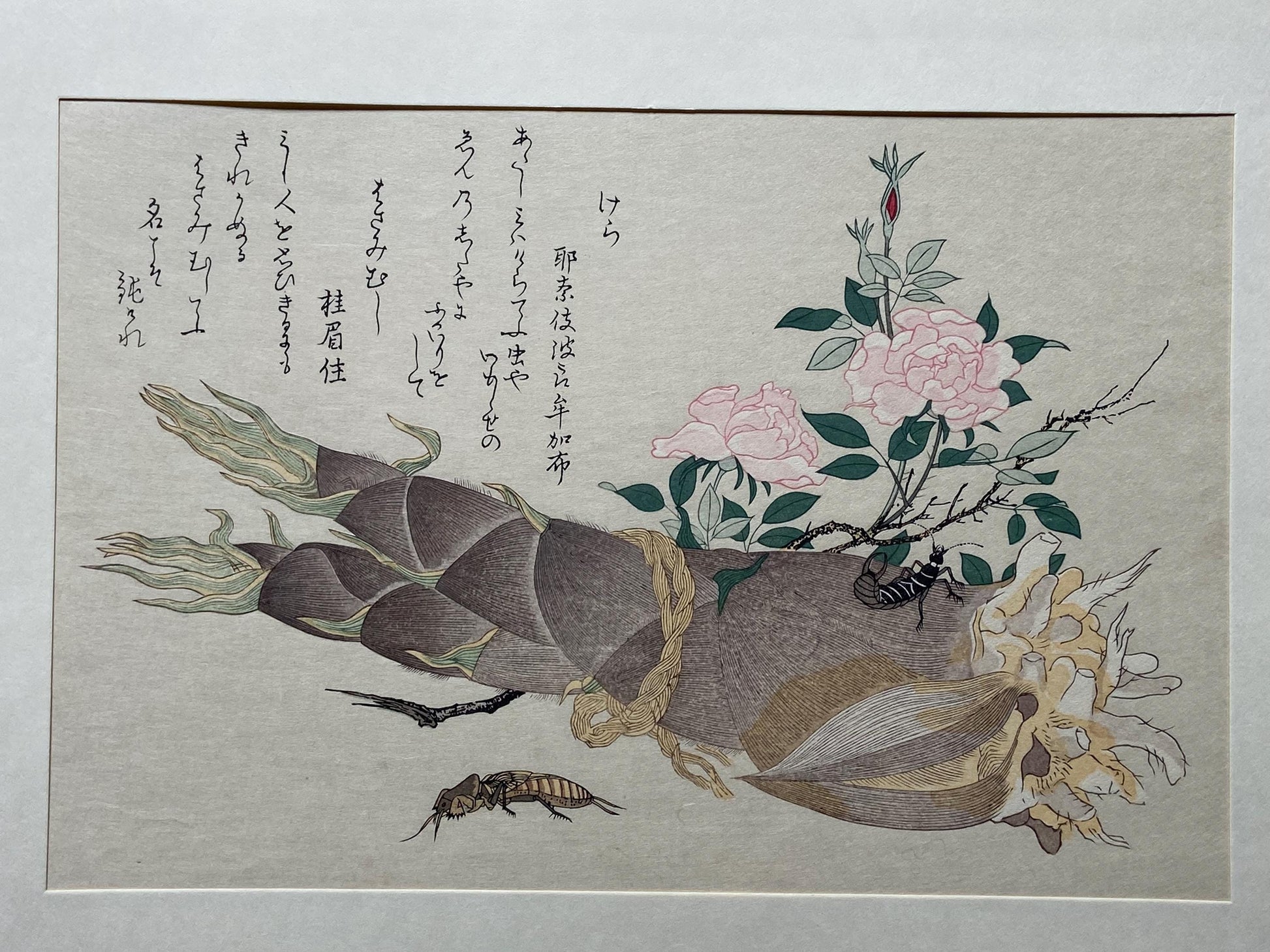 Japanese Ukiyoe, woodcut print, Utamaro, "Earwig (Hasamimushi) and Mole Cricket (Kera)"