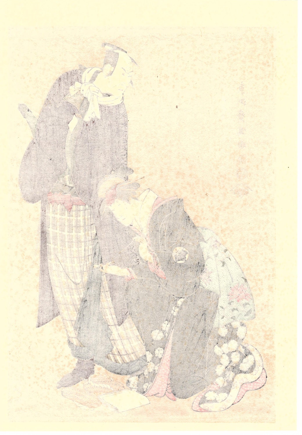 Japanese Ukiyo-e Woodblock print, Sharaku, "Actors Matsumoto Koshiro IV as Magoemon and Nakayama Tomisaburo as Umegawa"