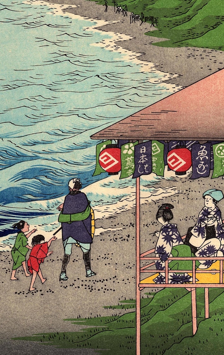 Woodblock print, Japanese Ukiyoe, Hiroshige, "Seven-Mile Beach in Sagami Province", Thirty-six Views of Mount Fuji .
