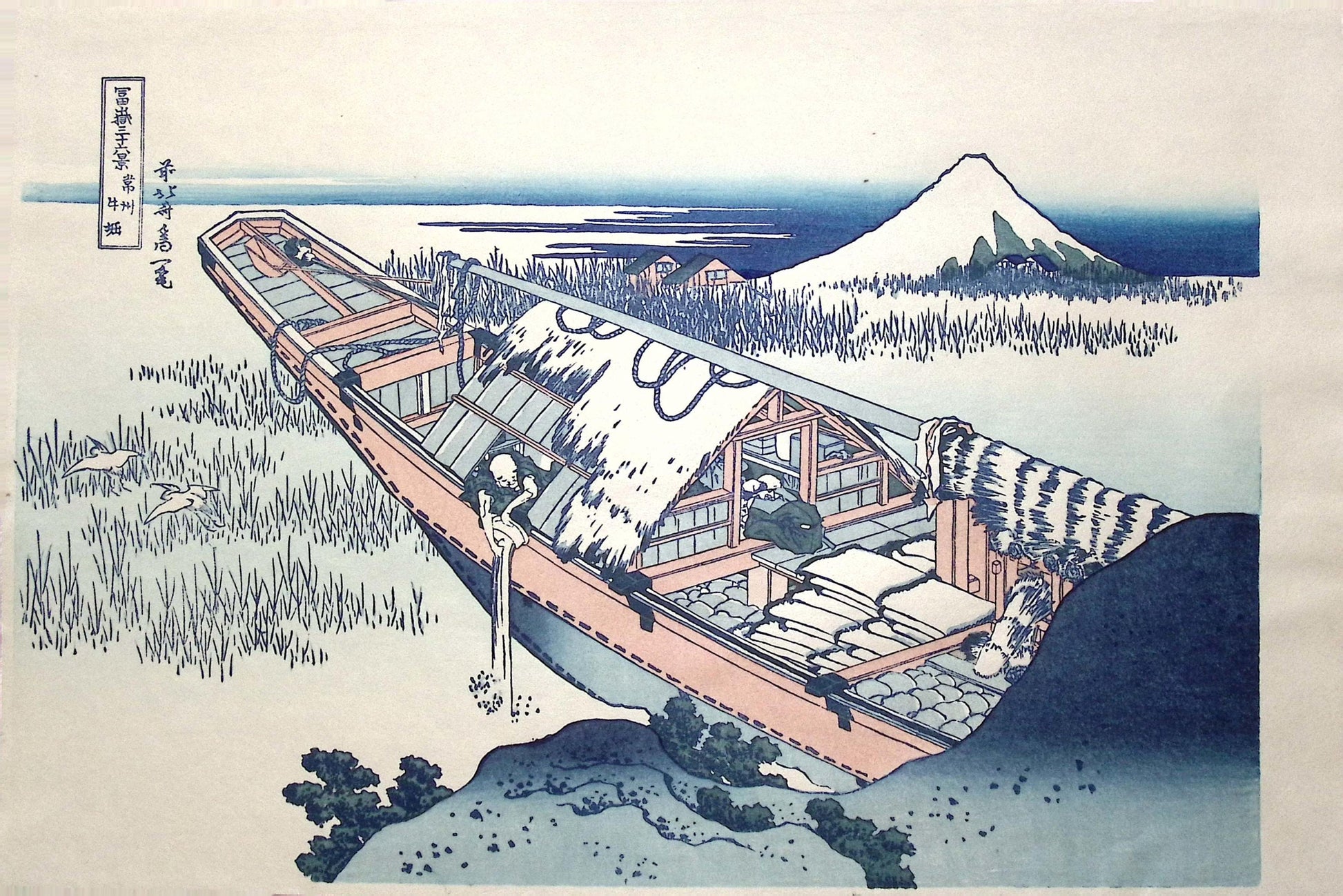 Japanese Ukiyo-e, Woodcut print, Hokusai, "Ushibori in Hitachi Province"