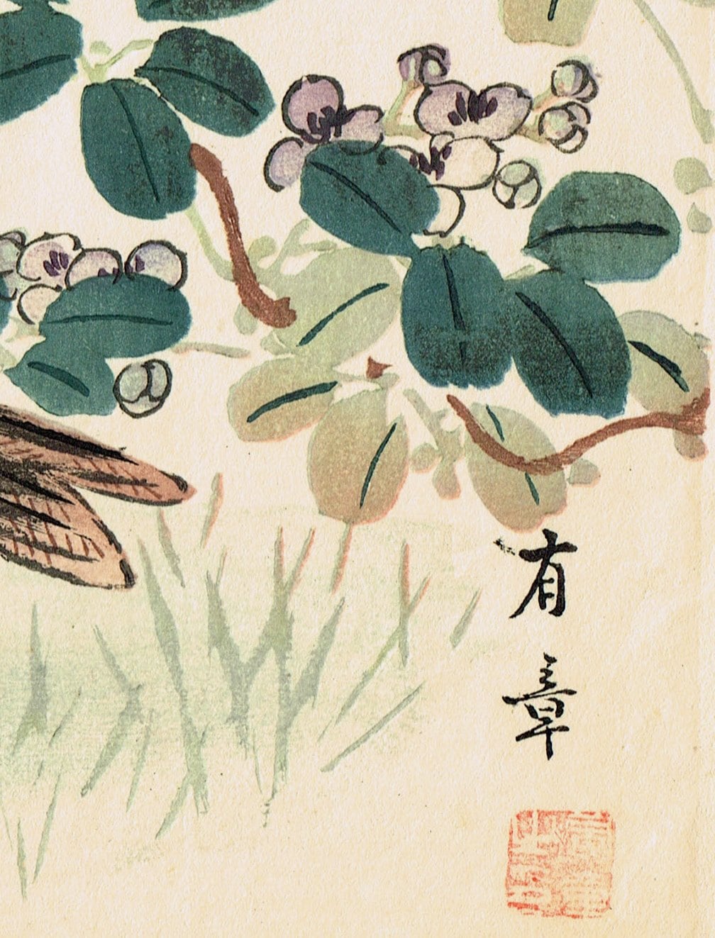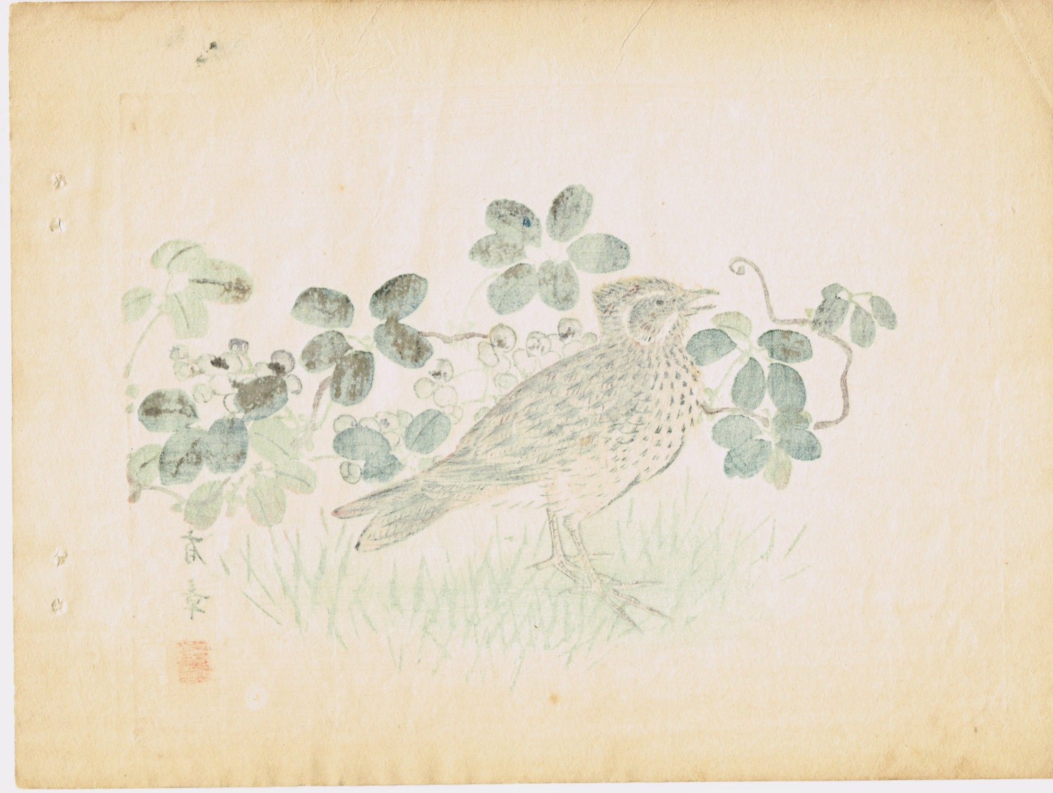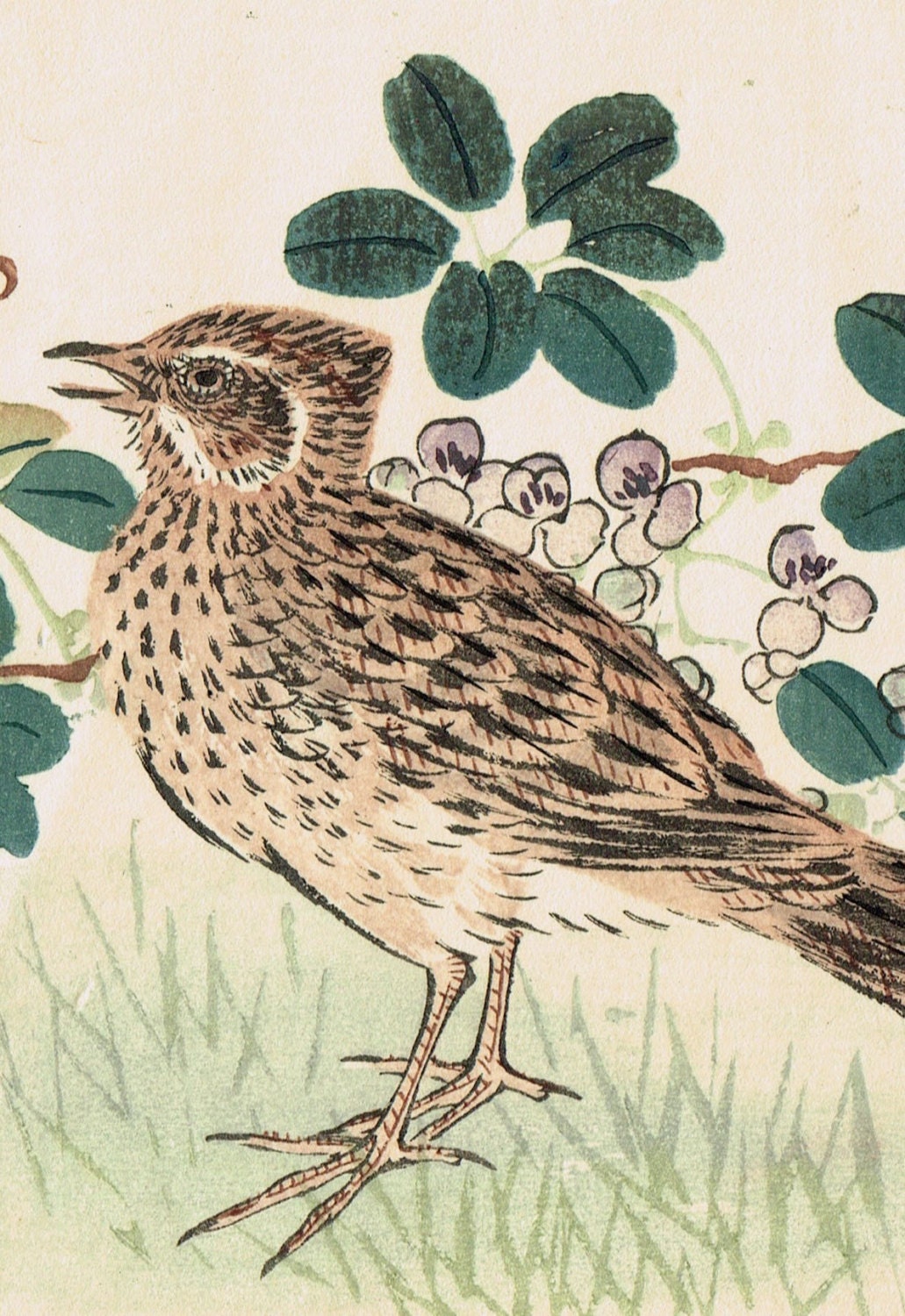 1913, Japanese Woodblock print, antique, Nakajima Yusyo, "Lark"