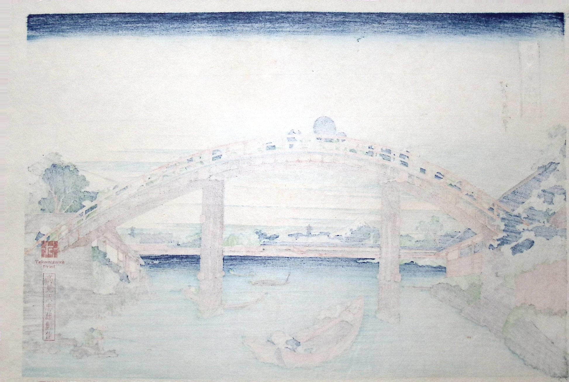 Japanese Ukiyo-e, Woodcut print, Hokusai, "Under Mannen Bridge at Fukagawa"