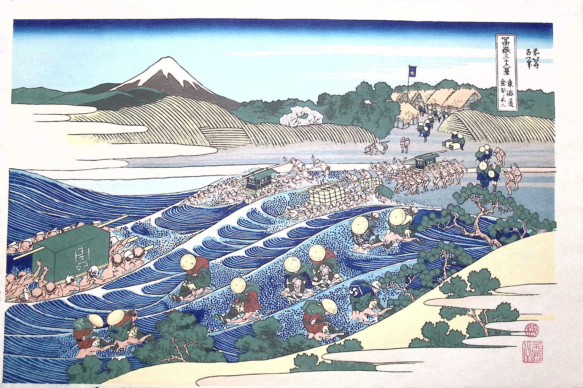 Japanese Ukiyo-e, Woodcut print, Hokusai, "The Fuji from Kanaya on the Tōkaidō"