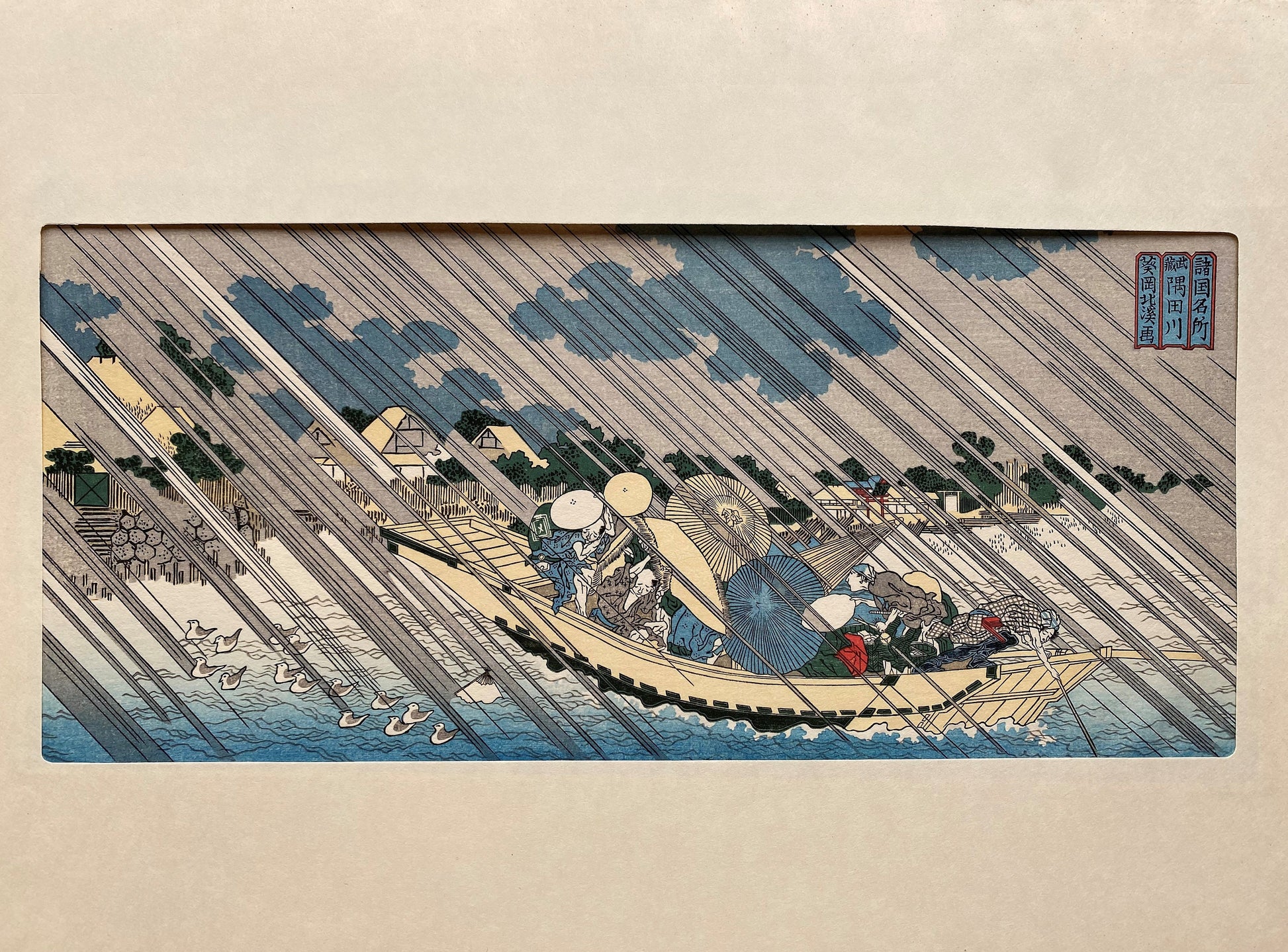 Japanese Ukiyoe, woodcut print, Aoigaoka Hokkei, "Sumida river in Musashi province"